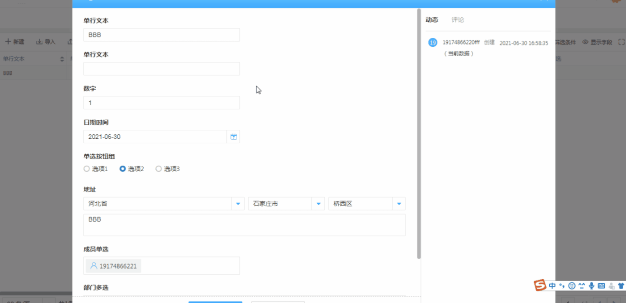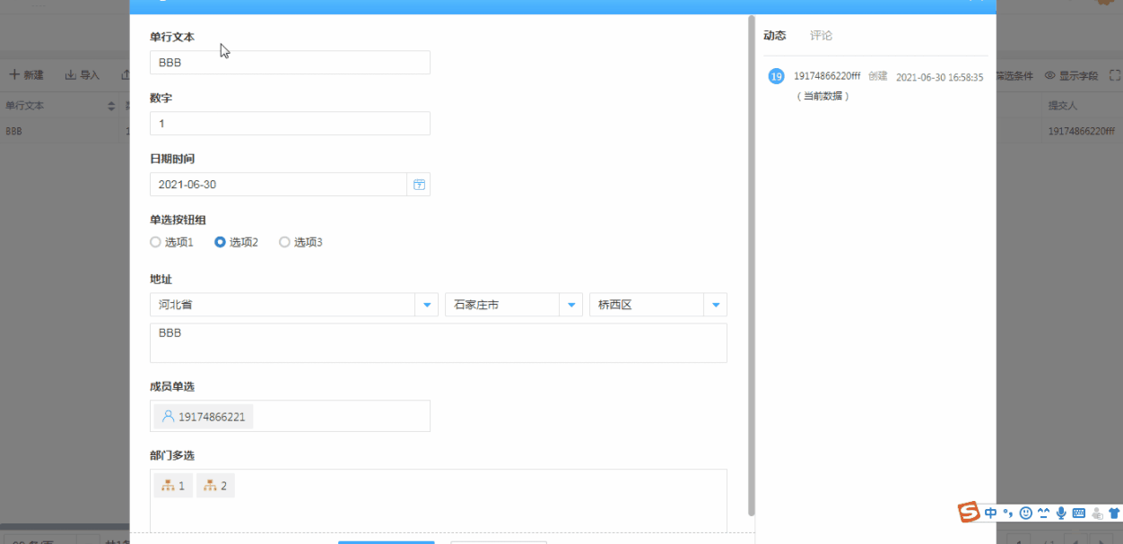 跳转内部表单支持当前应用内的表单(报表)和跨应用的表单(报表)。