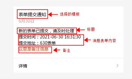 • 选择模板:必须选择一条模板,根据选择的模板展示标题、表单消息内容、备注等内容。