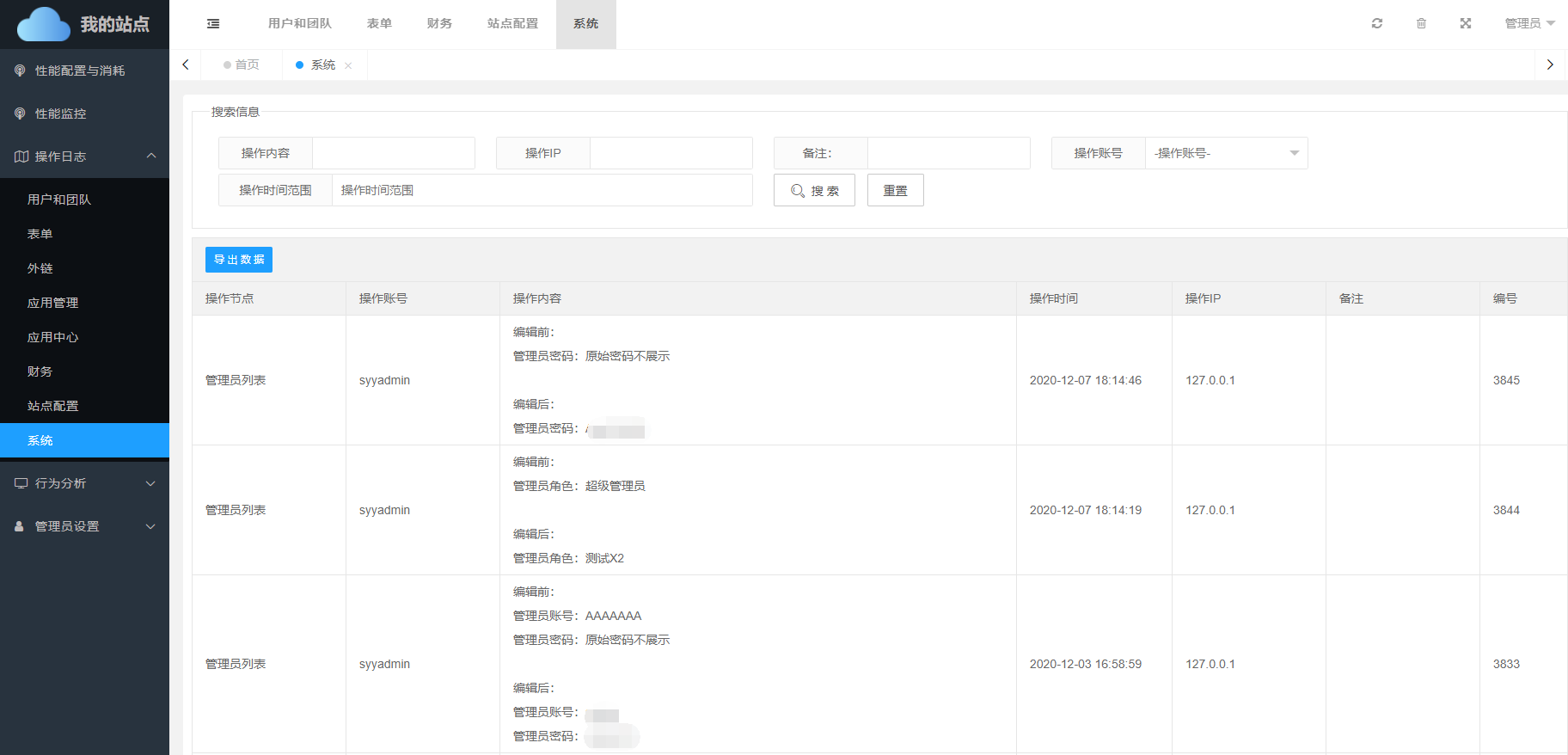 在系统操作日志中,会详细的记录每一项操作内容。