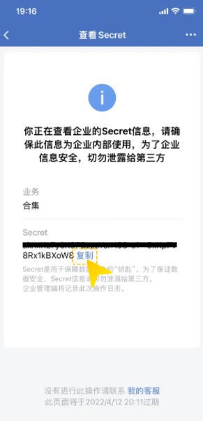 8、在 企业微信自建应用授权 编辑界面,粘贴到Secret的输入框中,再点击下一步