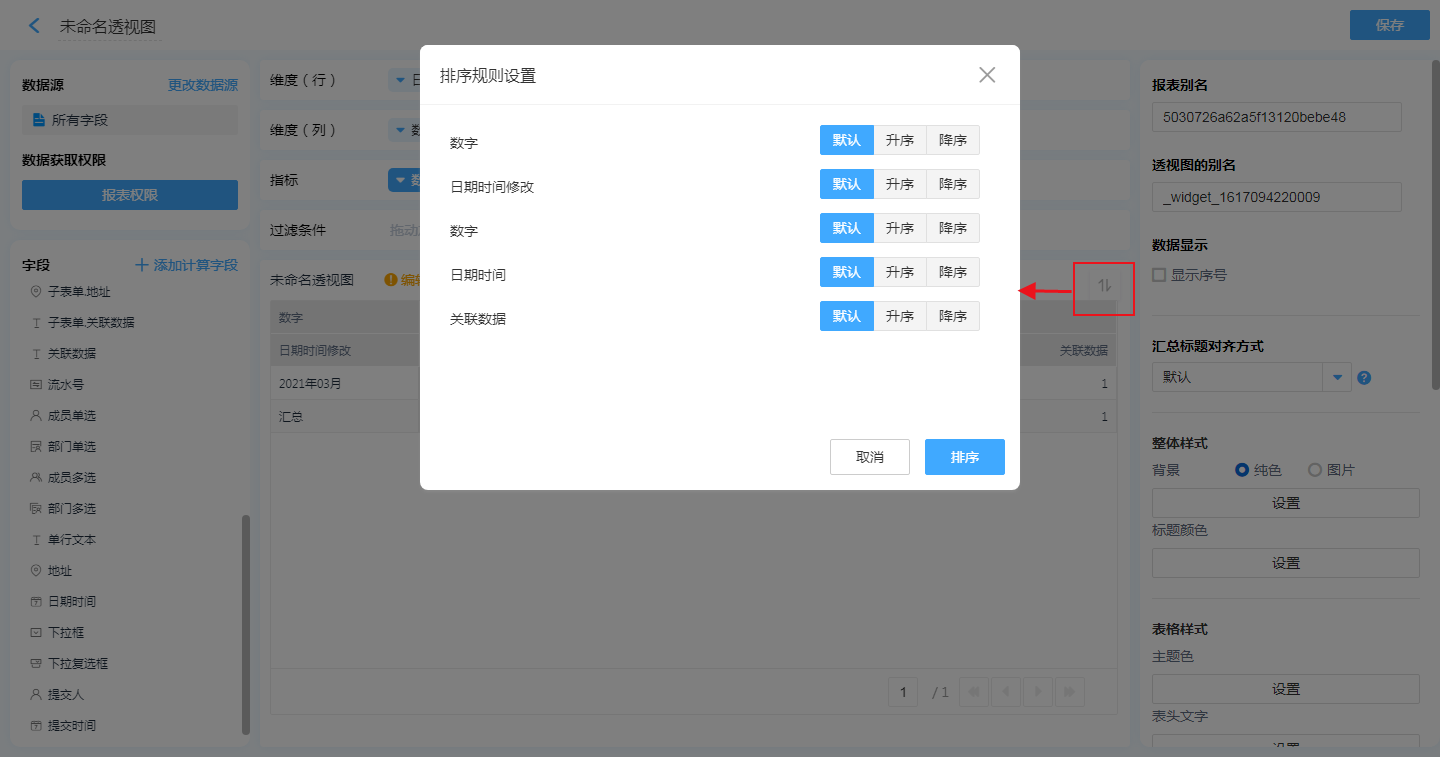 (2)点击 图表右上角【排序】 按钮可以设置排序。