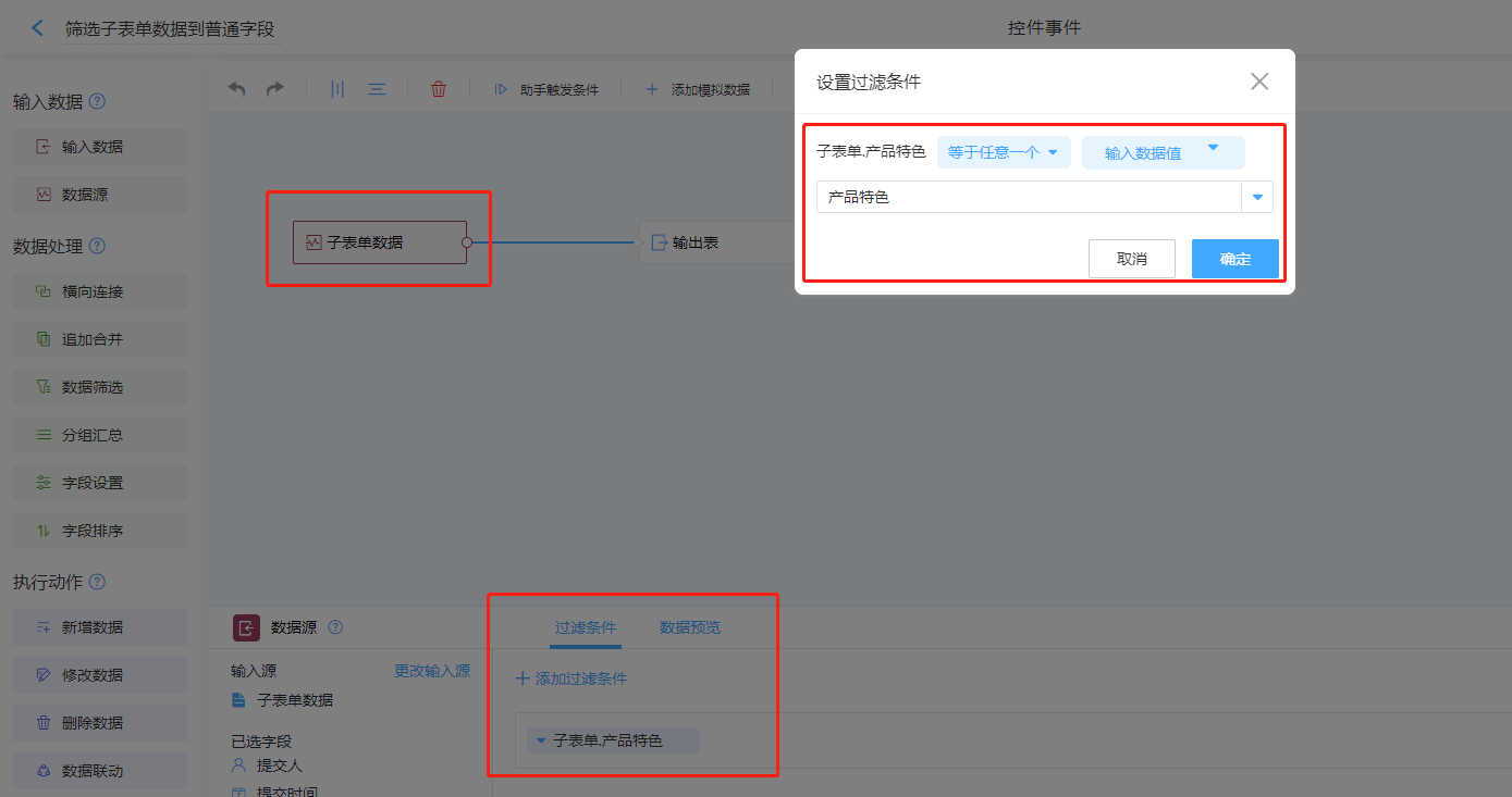 筛选子表单数据到普通字段