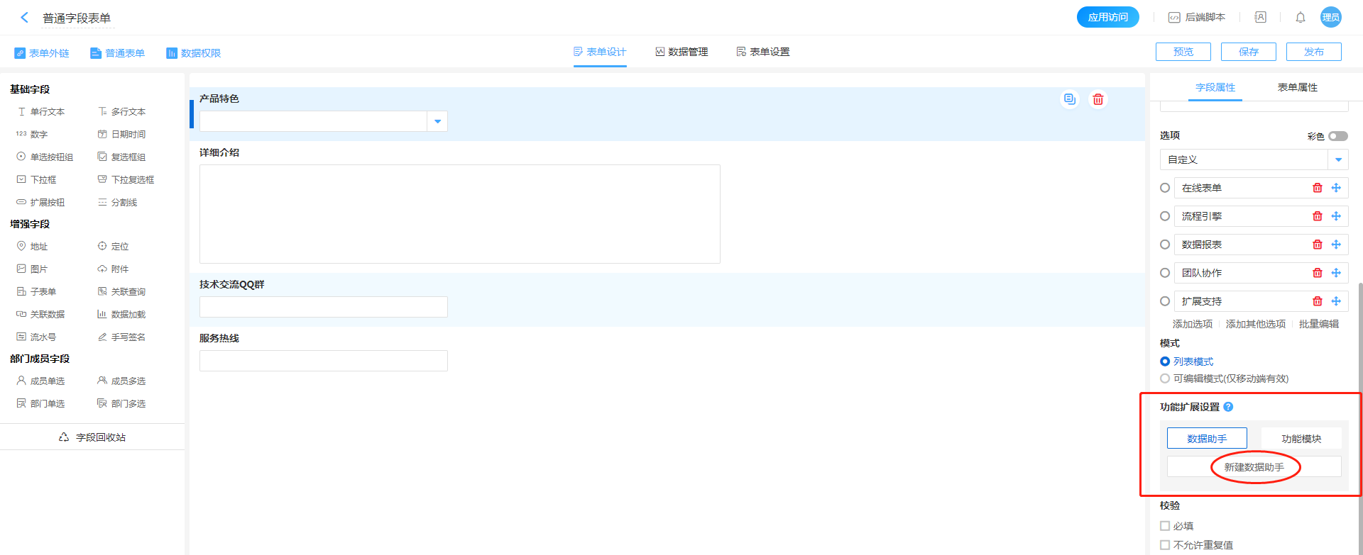 - 进入表单配置页面,找到需要进行触发目标控件(本案例以单行文本控件焦点触发为例),点击进入数据助手配置页面。