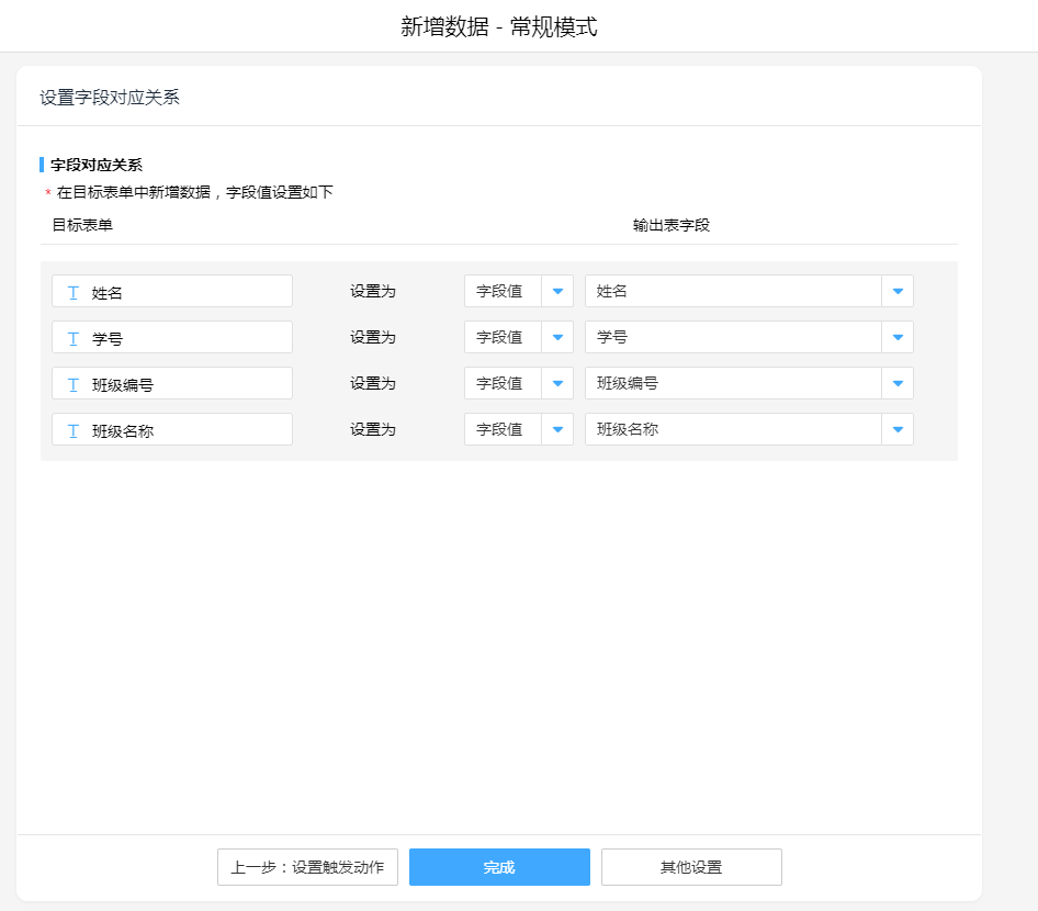 - 新增横向连接,设置主表与副表的关联字段,讲两表数据进行合并。