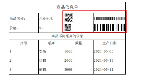 通过编辑好的自定义打印模板进行打印,可以看到打印的二维码或条形码: