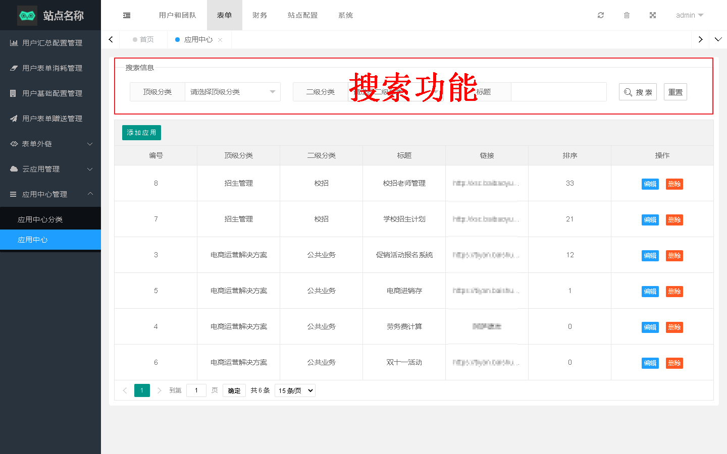 管理员可以通过后台,快速查找到需要进行管理的应用,并对其进行管理。