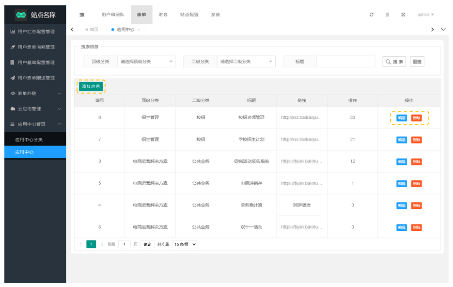 在六米云私有云后台,企业可以通过应用中心进行应用的安装。 管理员可以通过新增添加应用的方式,增加对应的应用,也可以对已存在的应用进行【编辑】和【删除】的管理。
