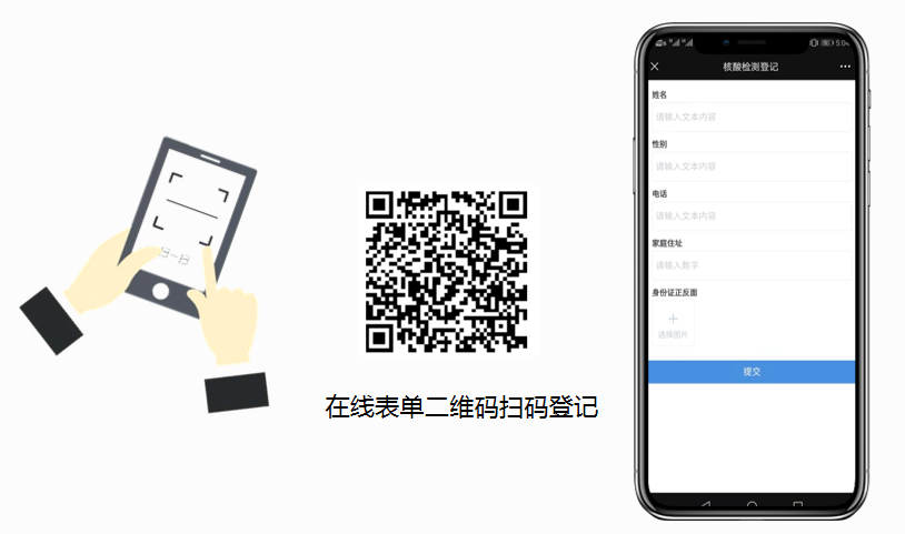 通过外链二维码搜集检测人员的身份信息,受检人员自行填写个人信息身份 通过表单数据的后台管理统计受检人员的身份信息