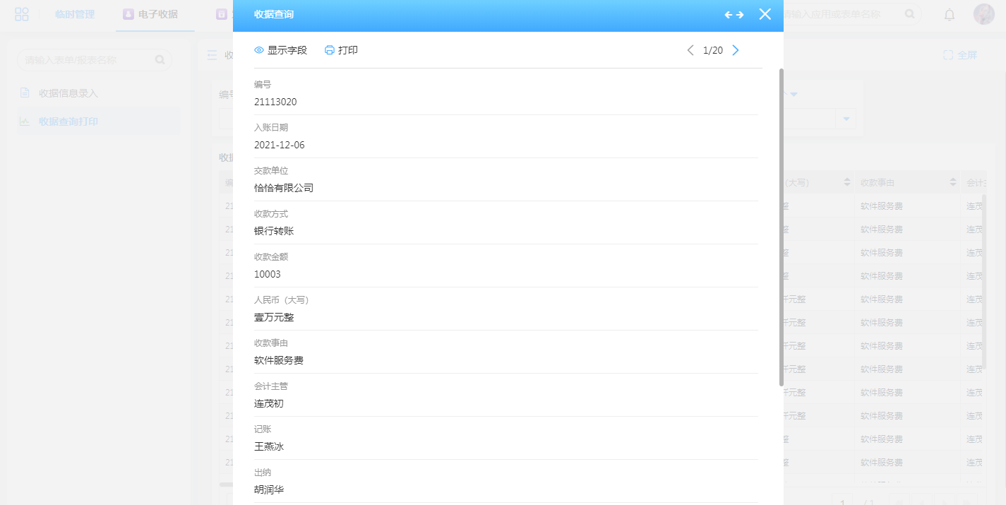 在提交成功的收据信息报表中,可以直接一键选择打印按钮,将自动匹配收据格式,确认无误后即可直接打印。
