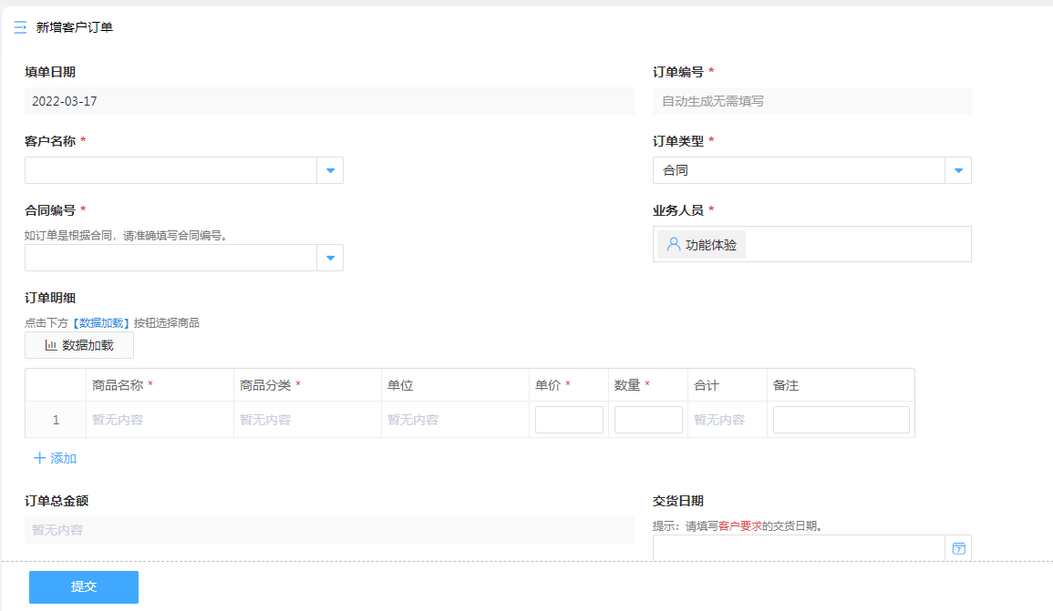 根据行业实际需求,订单页面的字段设计均可修改调整,填写完成的订单将汇总到订单查询报表,方便统一管理和随时调阅。