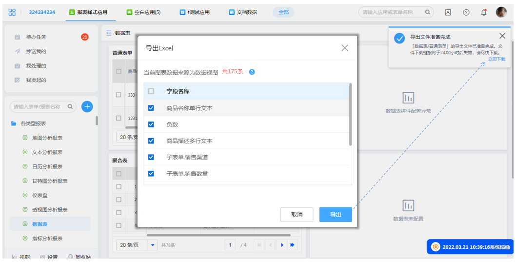 访问镜像模式,支持将数据管理和数据报表的内容进行导出、下载的操作。