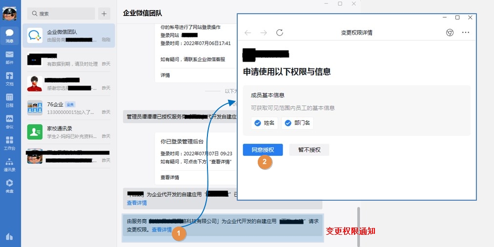 • 方法一:从企业微信-通知中确认变更。