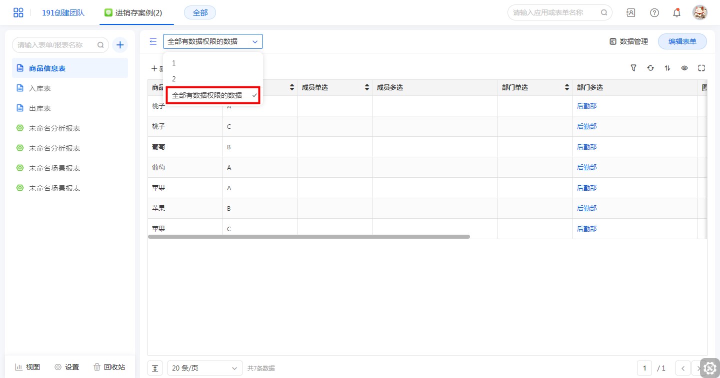 • 表单权限组,增加[全部有数据权限的数据]权限组,该权限组的权限为成员所有此表单权限组的权限集合