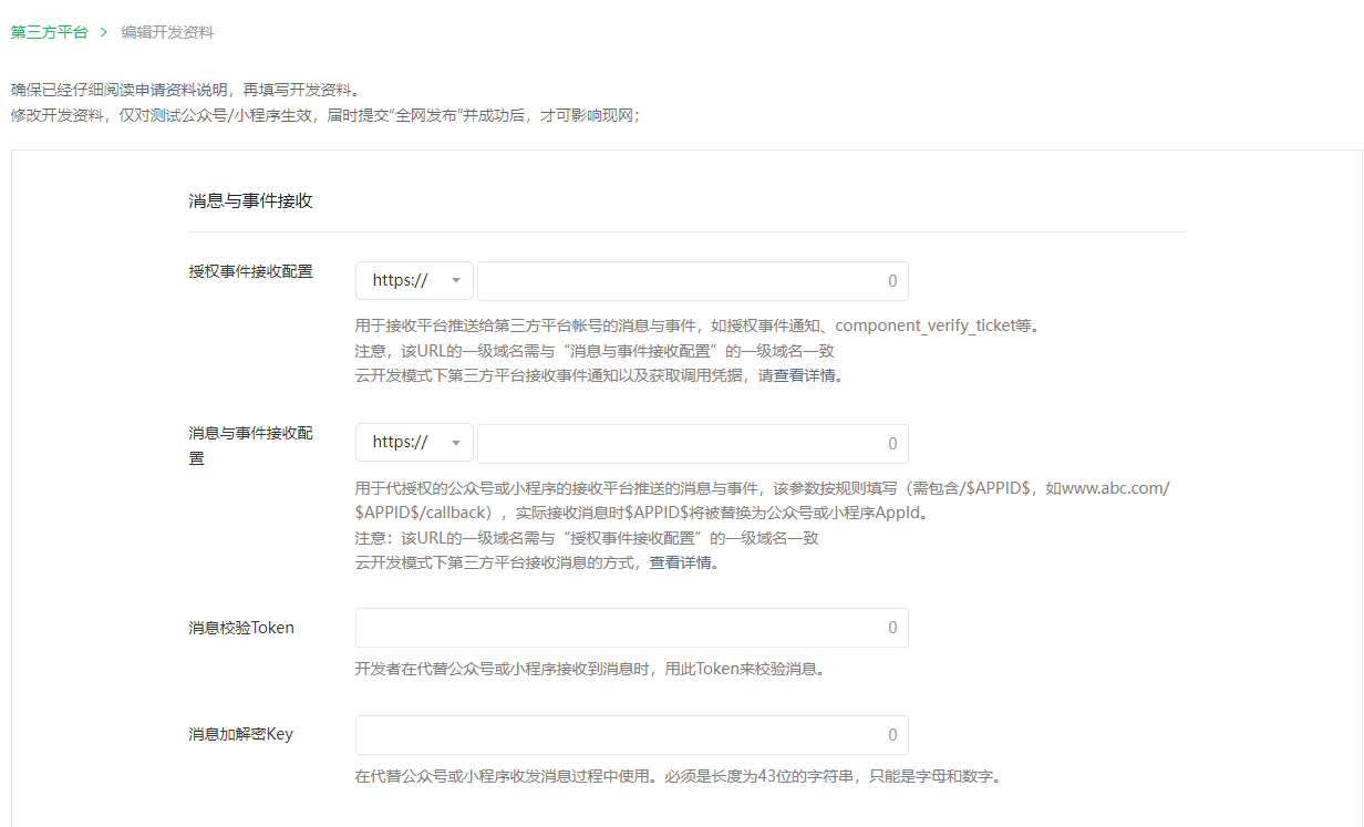 | 消息与事件接收配置 | https://私有云域名/weixin/callback/$APPID$ |