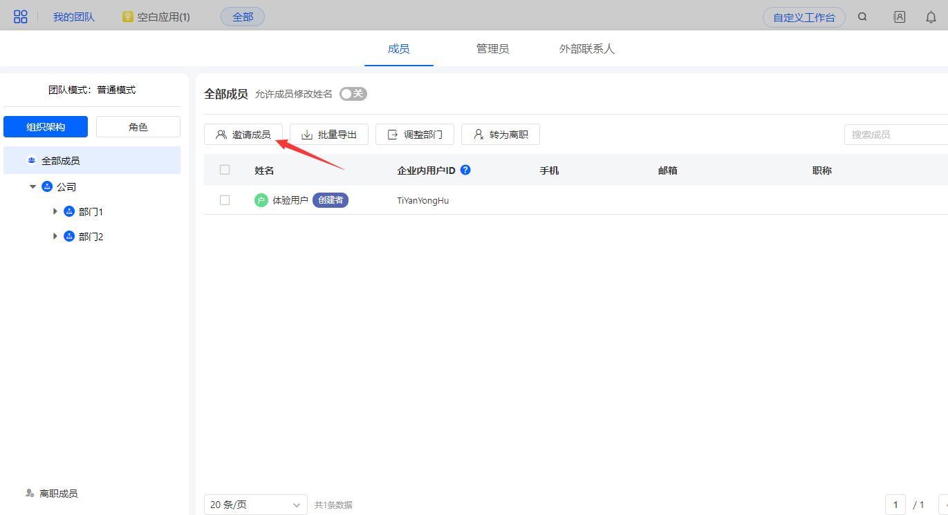 通常情况下平台的团队成员是属于企业的内部员工,通过在通讯录当中邀请团队成员,可以让成员与你在同一个团队当中协同办公。