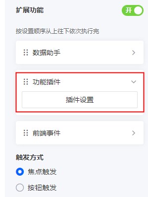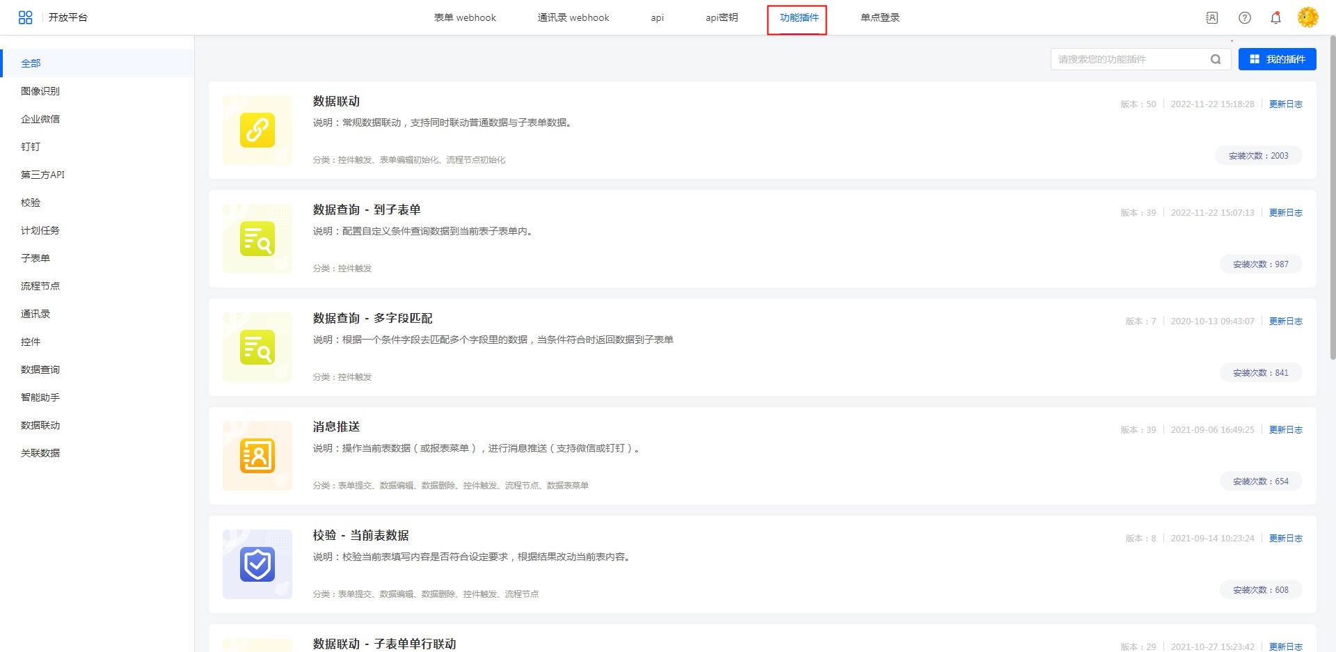 • 表单控件、表单属性、流程节点、报表菜单、计划任务等支持添加功能插件的位置