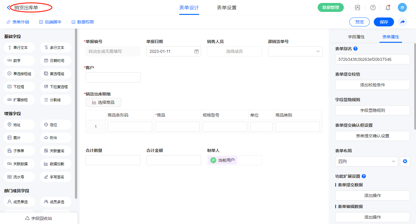 - 2.8、表单【销货出库单】字段及表单属性设置