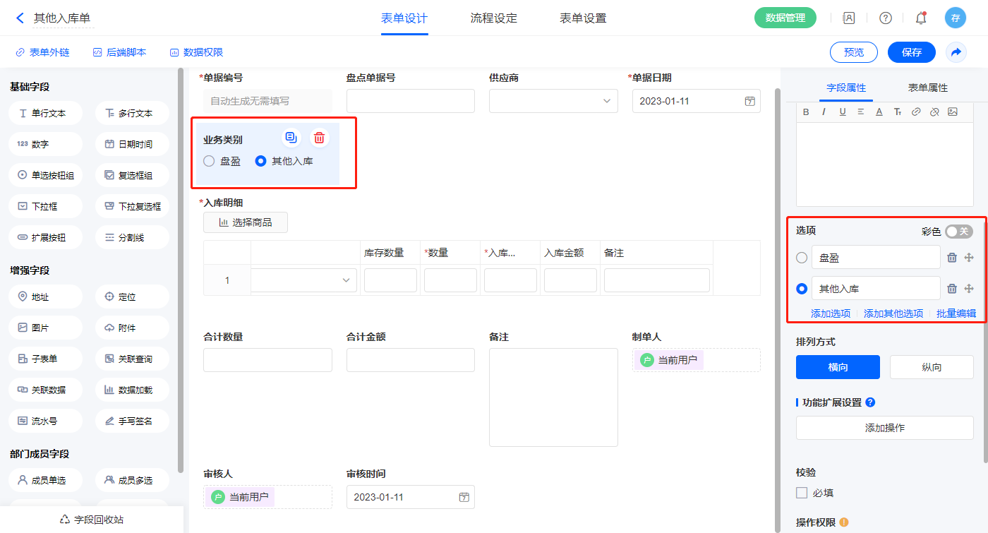 - 2.12、表单【其他入库单】字段及表单属性设置