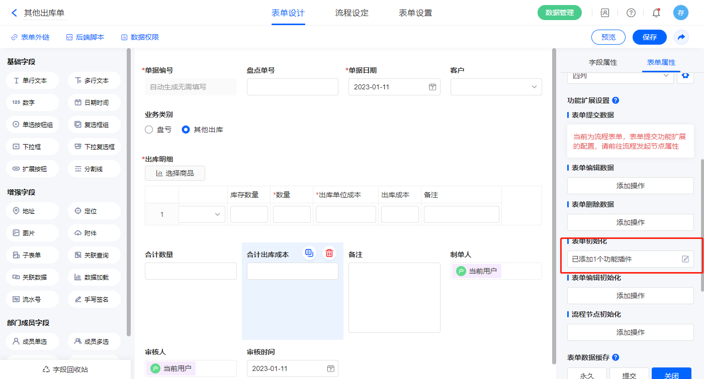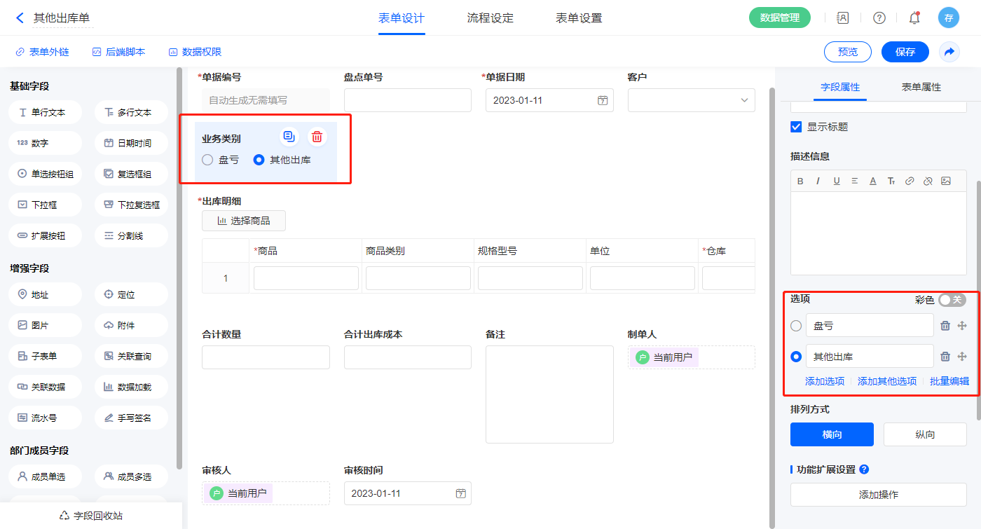 - 2.13、表单【其他出库单】字段及表单属性设置