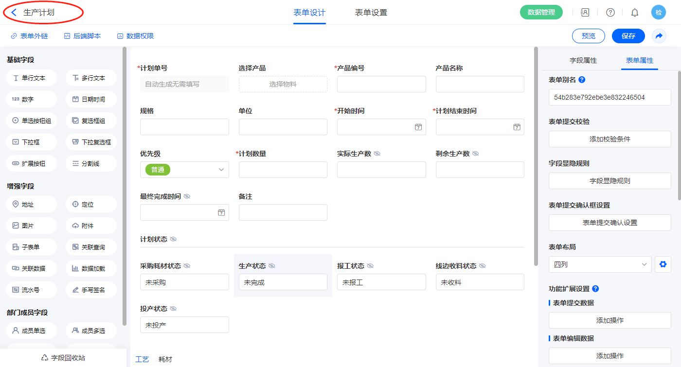 | 计划状态 | 分割线 | 采购耗材状态 | 单行文本 |