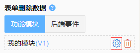②、表单属性里“表单删除数据”选择为“功能插件”。