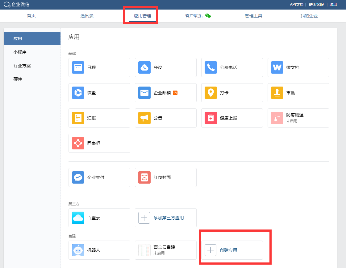 登录后在应用管理中创建一个快捷应用(获取参数的辅助应用)。