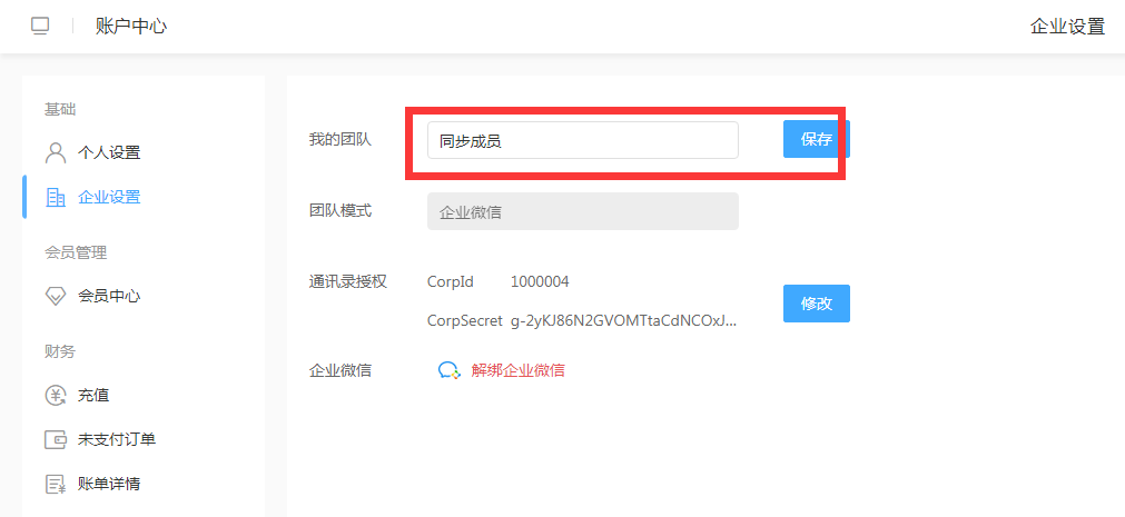 绑定后,团队名称不再同步,需要在账户中心 >> 企业设置 中手动修改。