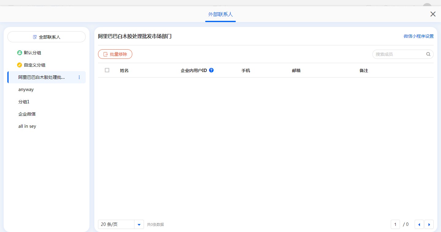 当外部联系人作为普通管理员时,仅能管理外部联系人,无内部通讯录面板!