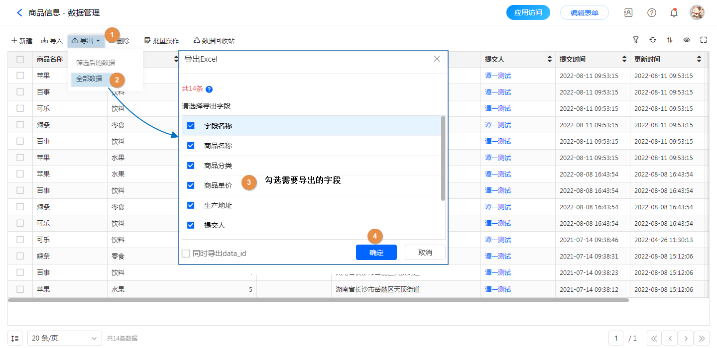 导出功能可导出当前表所有数据,也可以先对表单内的数据进行筛选,只导出需要的数据,通常用于数据更新,也支持先勾选数据,再导出勾选的数据。