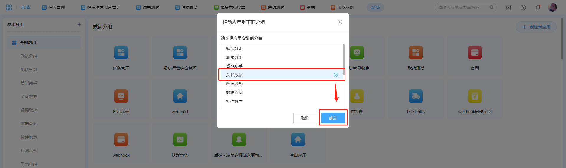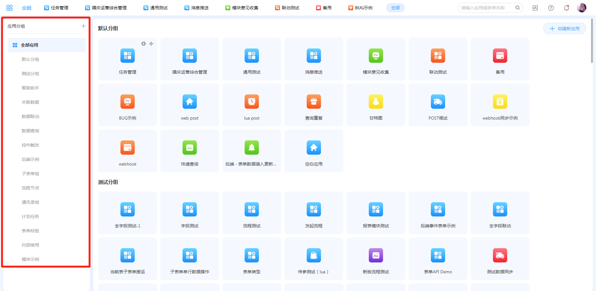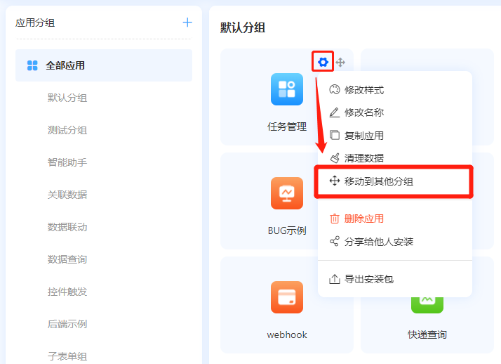应用分组是为了便于对应用进行分类管理,应用分组仅创建者和系统管理员能够添加应用的分组,并可以将全部应用移动到相对应的分组。