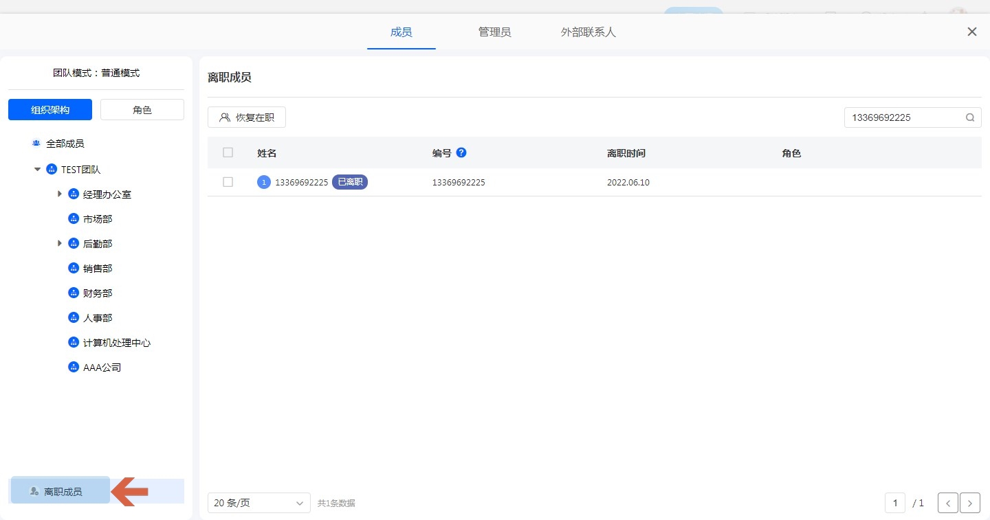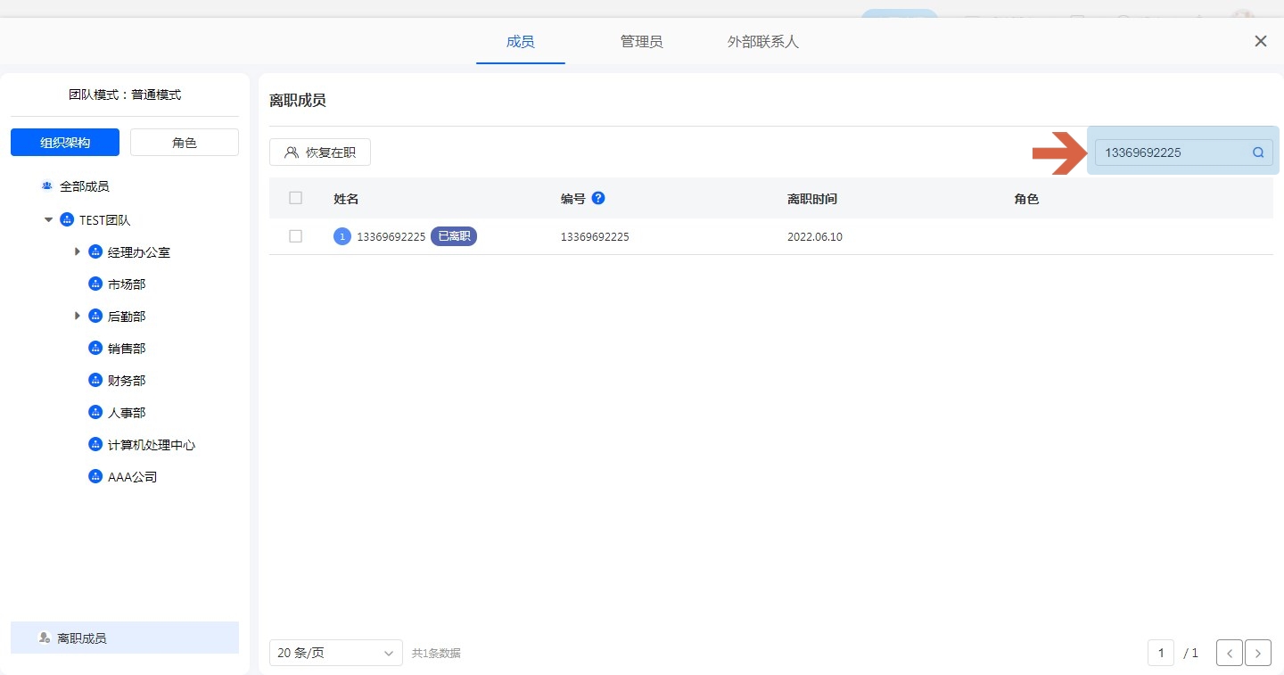 离职成员搜索