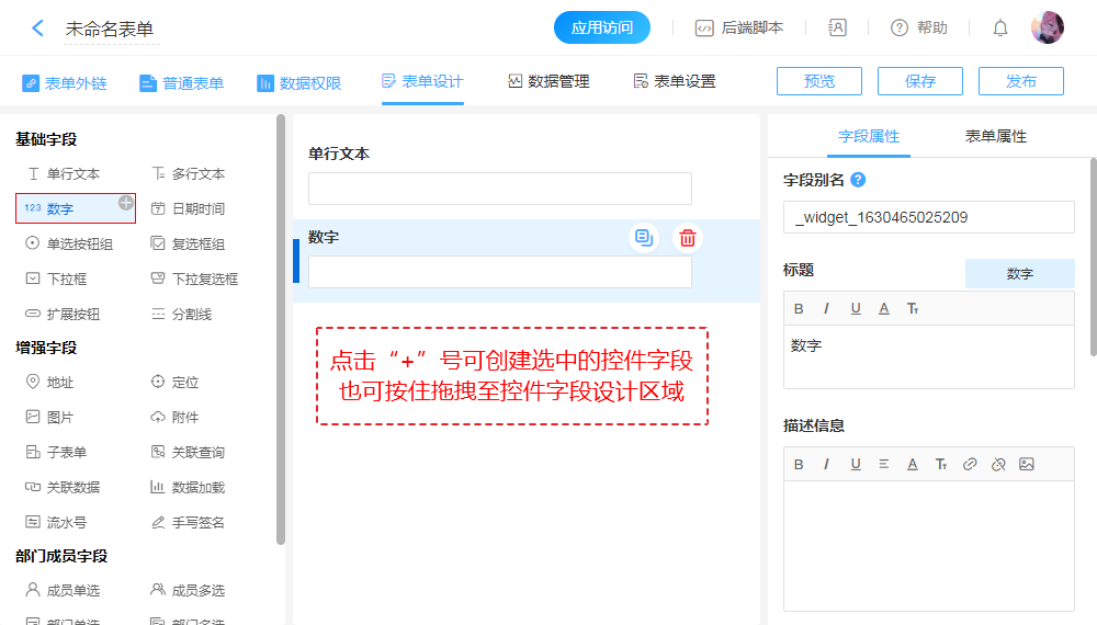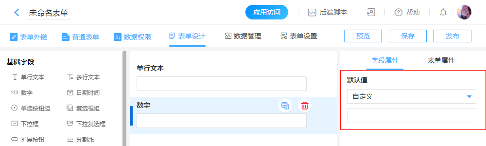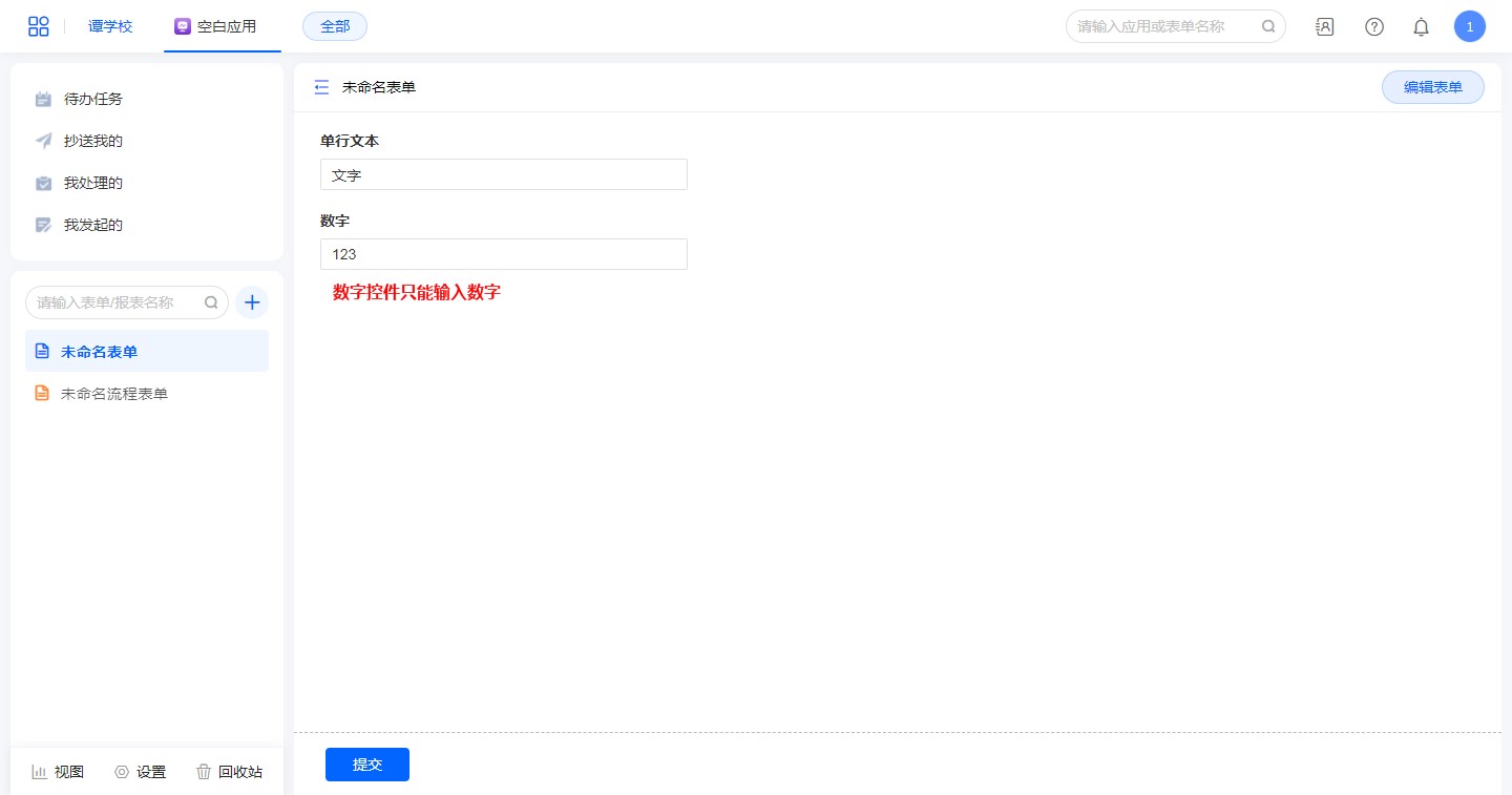 “数字”是用于表单中数值记录或计算的场景,只允许输入数值类的值。