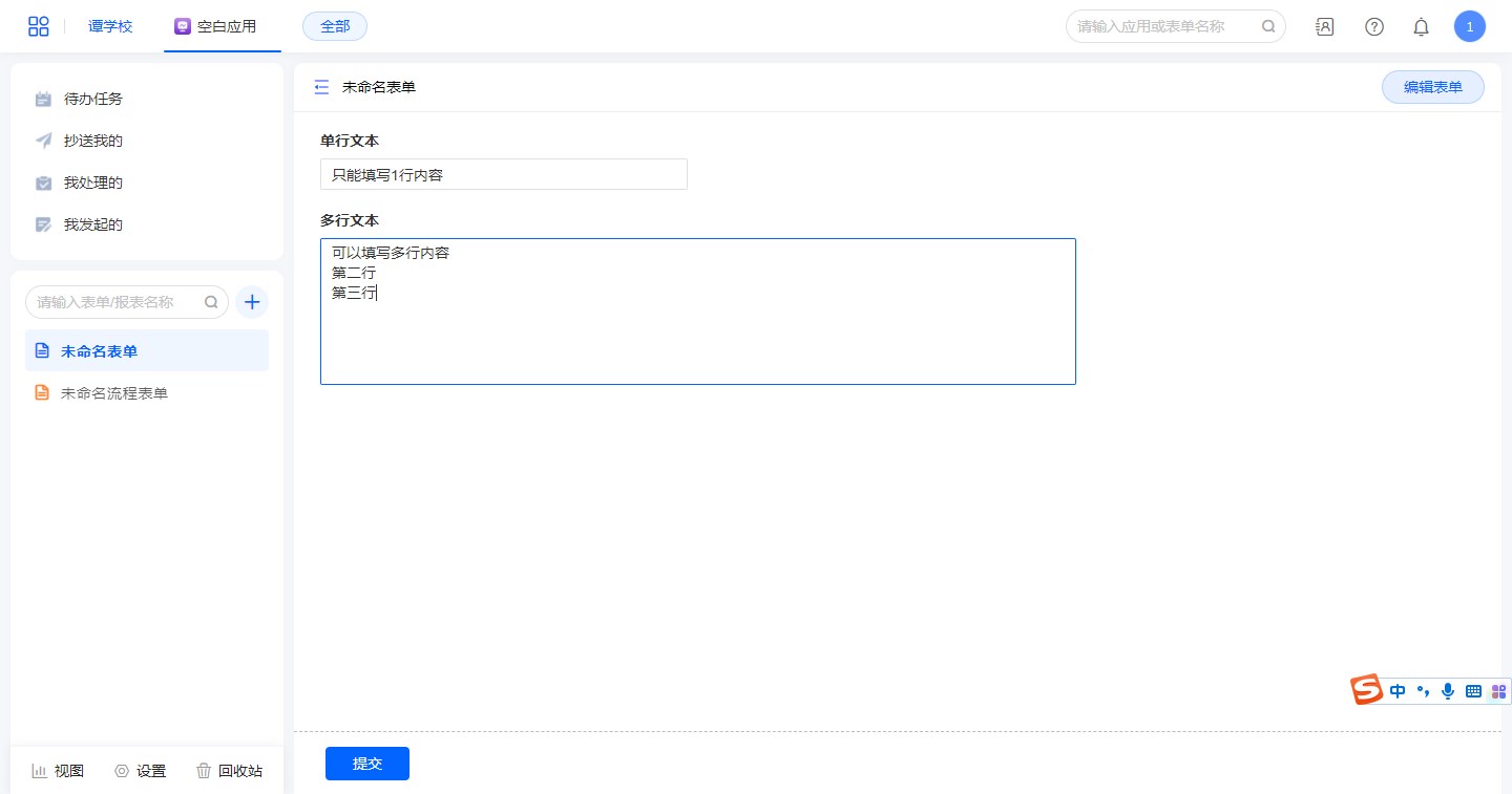 1. 与“单行文本”控件相比,“多行文本”支持多行文本输入,但无法选择不同格式,且不支持扫码。
