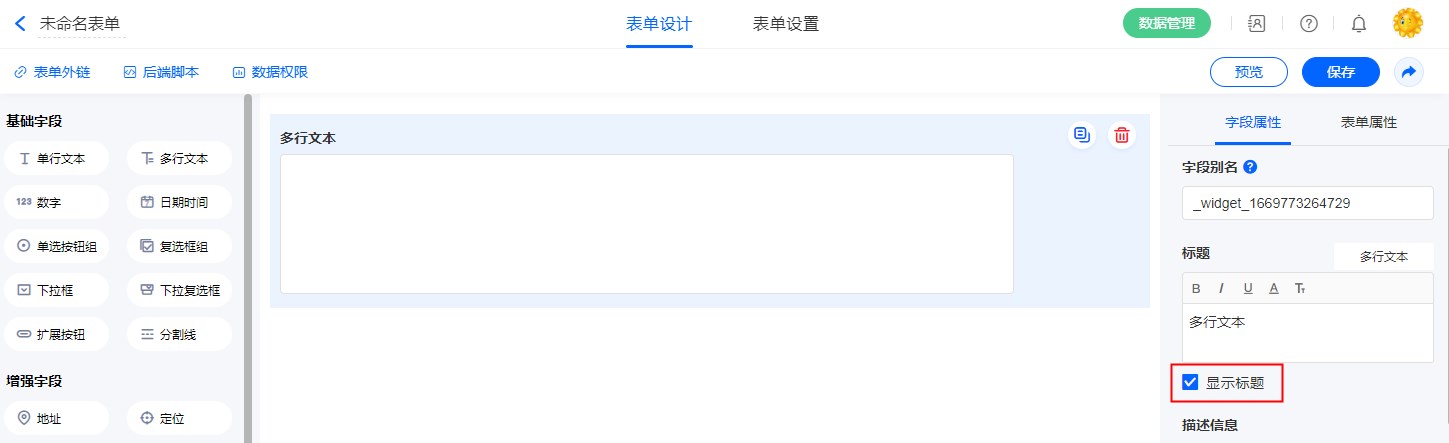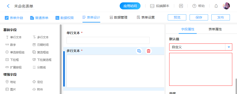3. 如果“多行文本”属于子表单内的控件,则无法设置此属性。
