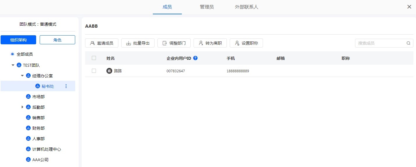 | 被选择的用户所处部门 只显示当前用户的主部门。 |