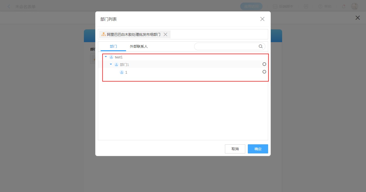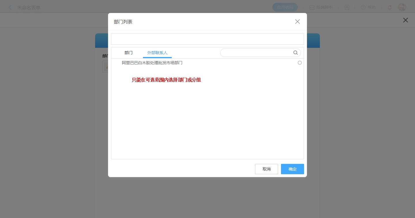 - 如果部门控件设置了可选范围,则只能在可选范围内选择。