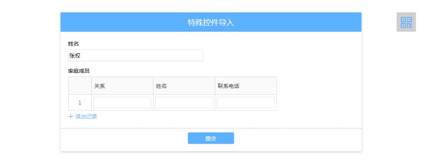 - 例如通过上图中的外链扩展姓名:张权,来录入一条数据。姓名无需填写。