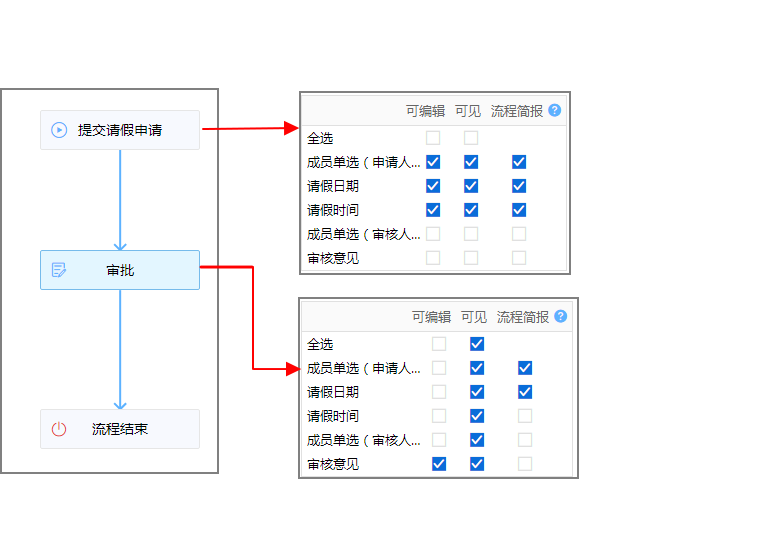 适用于流程中,不同节点负责人负责填写不同字段、互不干扰的情形。