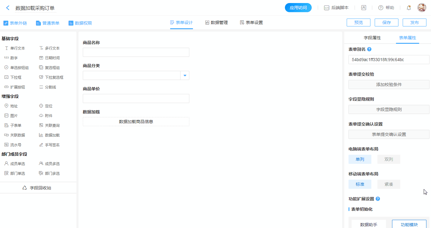 在设计表单/报表时,可以使用发布功能,将表单/报表共享给指定成员。
