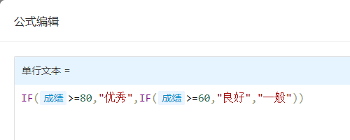 - 判断成绩大于等于80,返回“优秀”,否则判断成绩大于等于60,返回“良好”,否则返回“一般”。