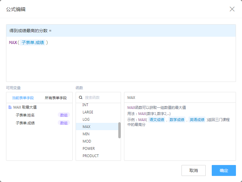 | number1 | 数字字段、数值型 | 需要判断数组参数,非数字则按 0 处理 |