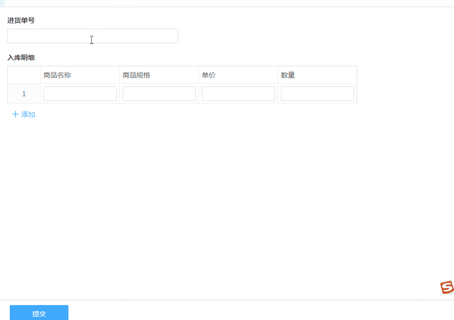 1.创建【进货信息】表单,并添加一个【单行文本】字段,标题为:进货单号。