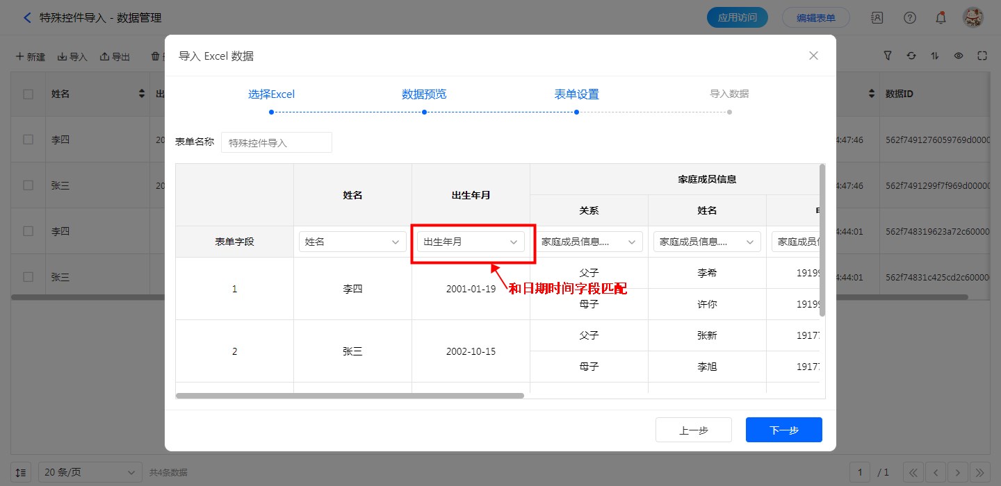 导入成功后,如果需要用到其他的日期类型的话,在表单设计页面,选择该日期字段,在控件属性中调整类型。