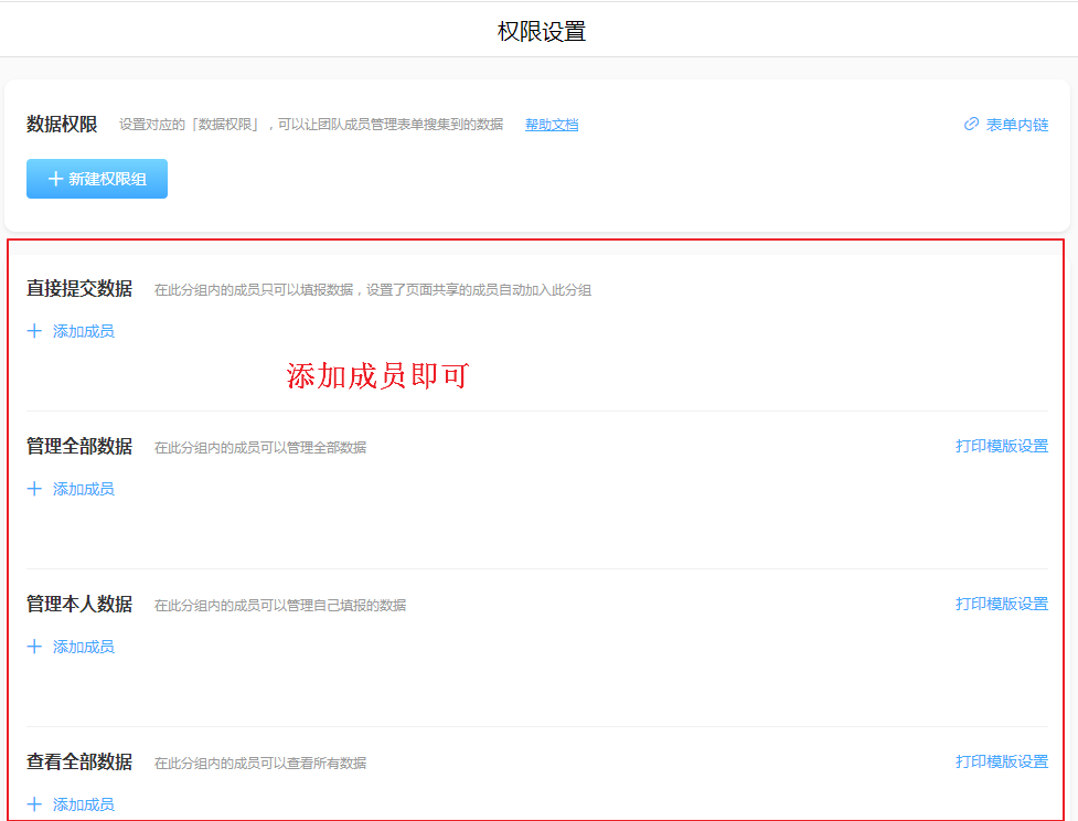 普通表单的数据权限分为预定义权限和自定义权限,预定义权限是系统自带的权限组,只需添加相应的成员即可生效;自定义权限组是根据需求由管理员自行给成员分配权限。