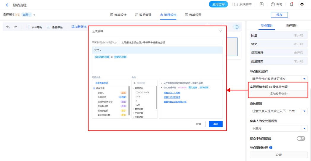 节点校验的公式写法和表单提交校验一致,点击查看【表单提交校验验】。