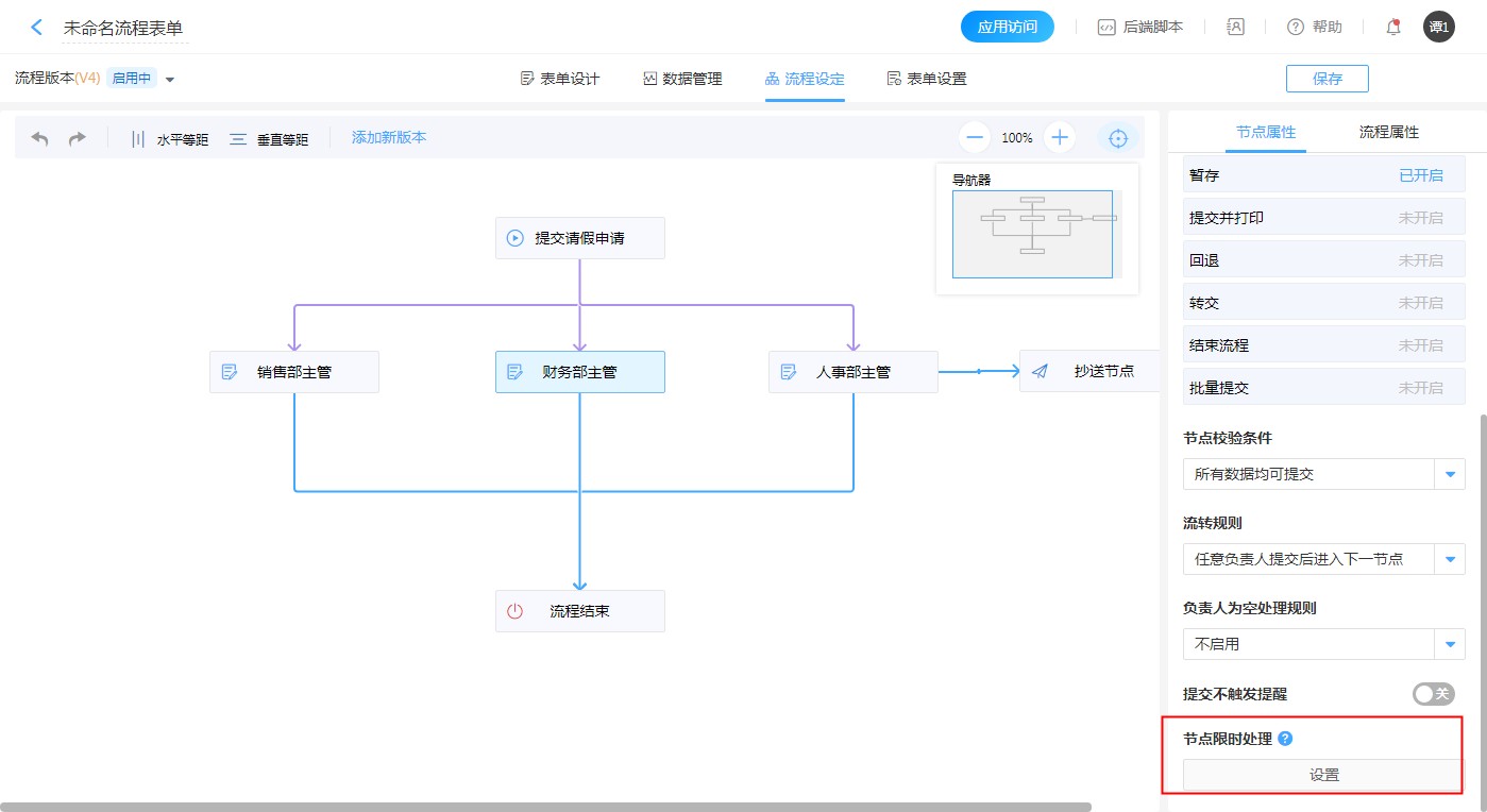不同的限时处理设置请参考文档:自动提醒、自动提交、自动回退。