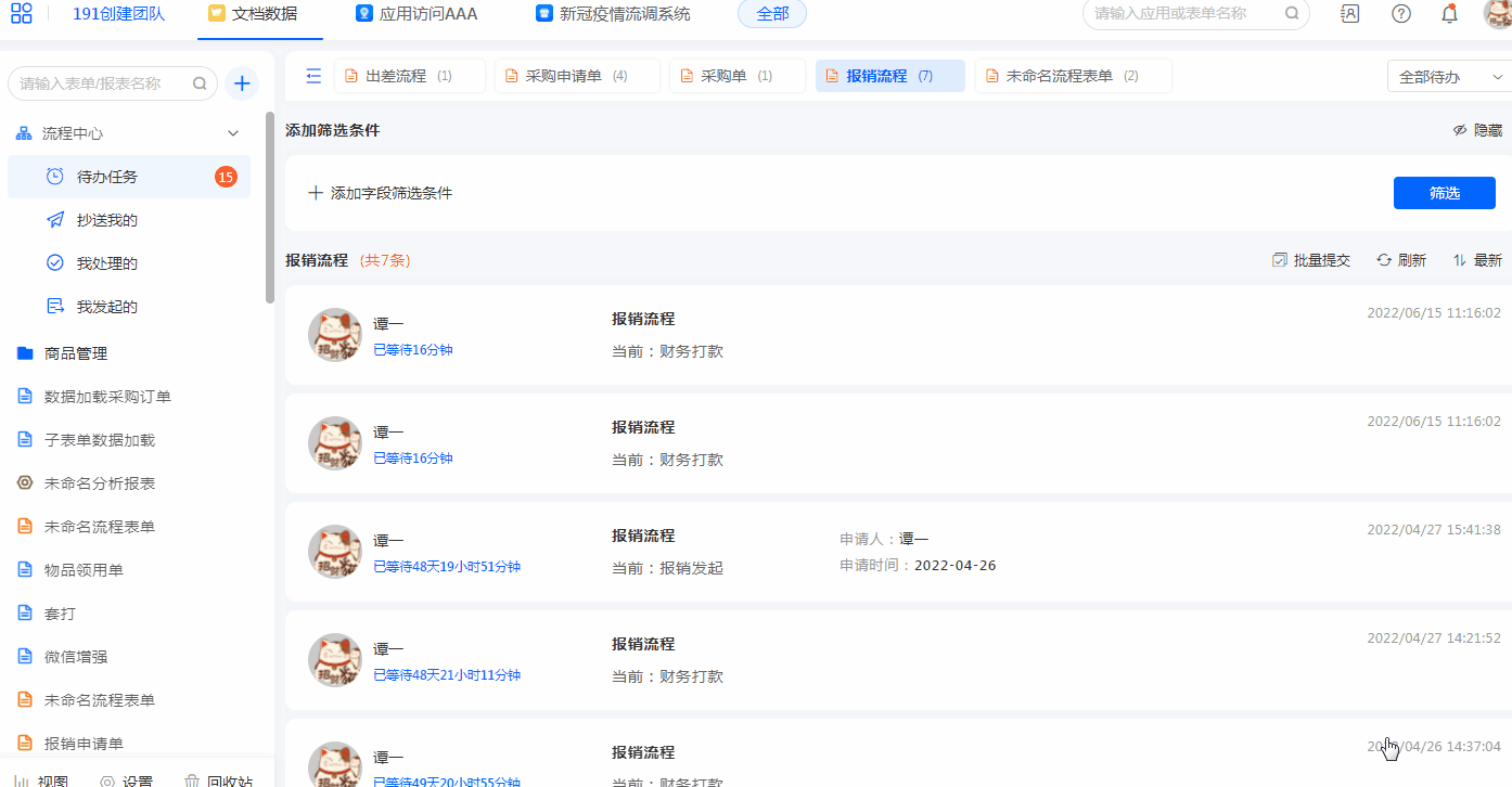 发起流程后,在没有任何人操作过数据之前,发起人可以把数据撤回到自己的「待办任务」中,重新编辑再次提交。