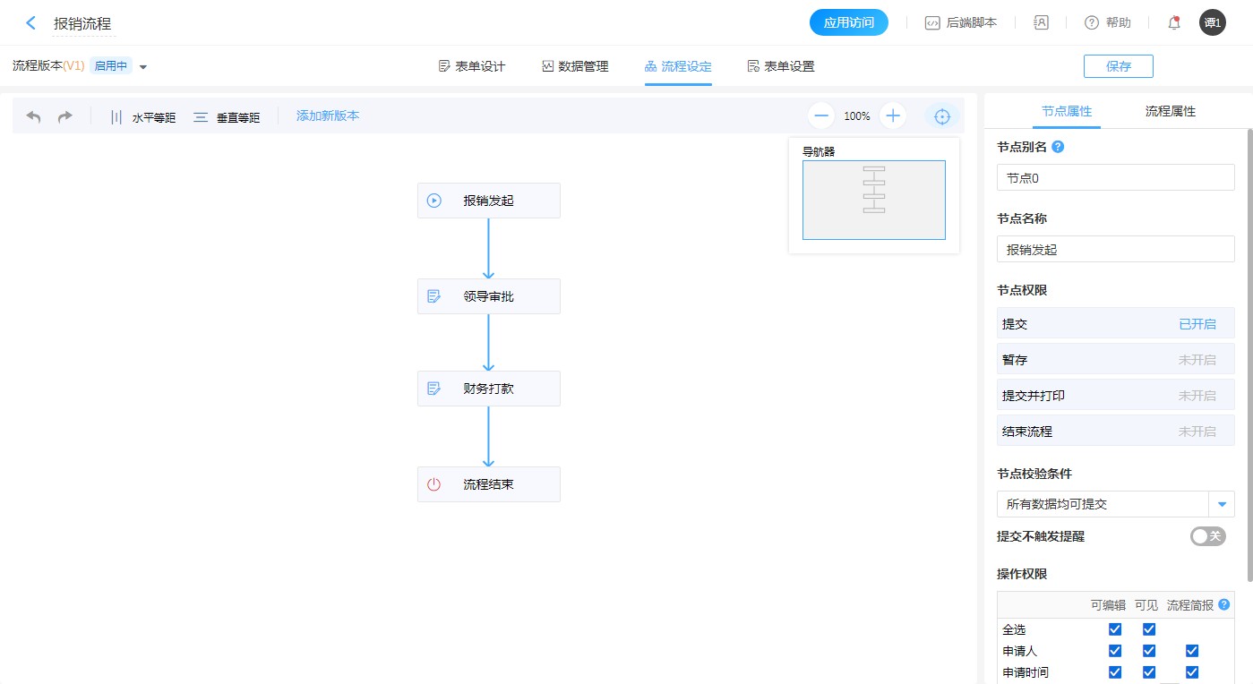 2. 完成报销流程的搭建,并启用流程,因为只有启用的流程才能在父流程中被选中。