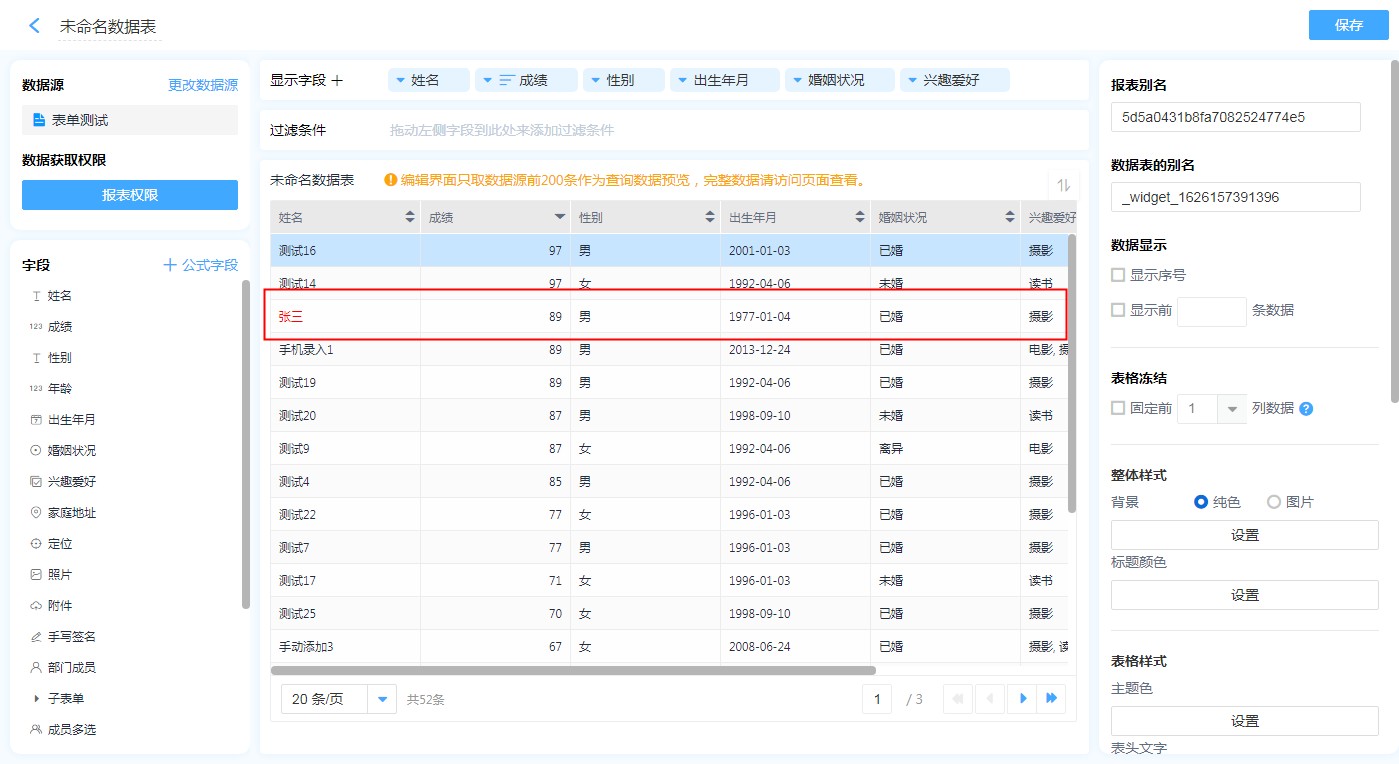 即设置数据表的默认排序字段(可多个也可单个字段),设置排序方式后,表单的数据就会根据排序字段进行升序或降序排列。