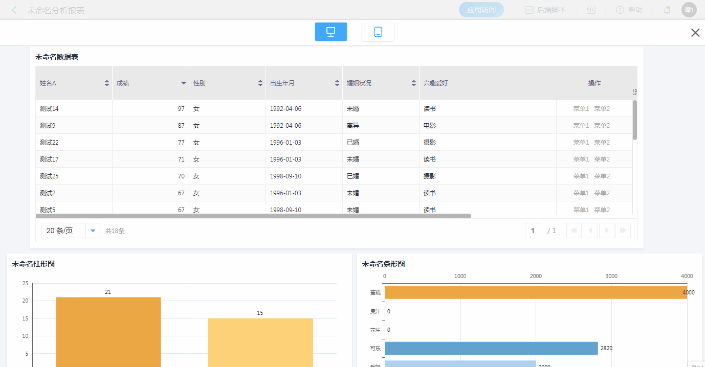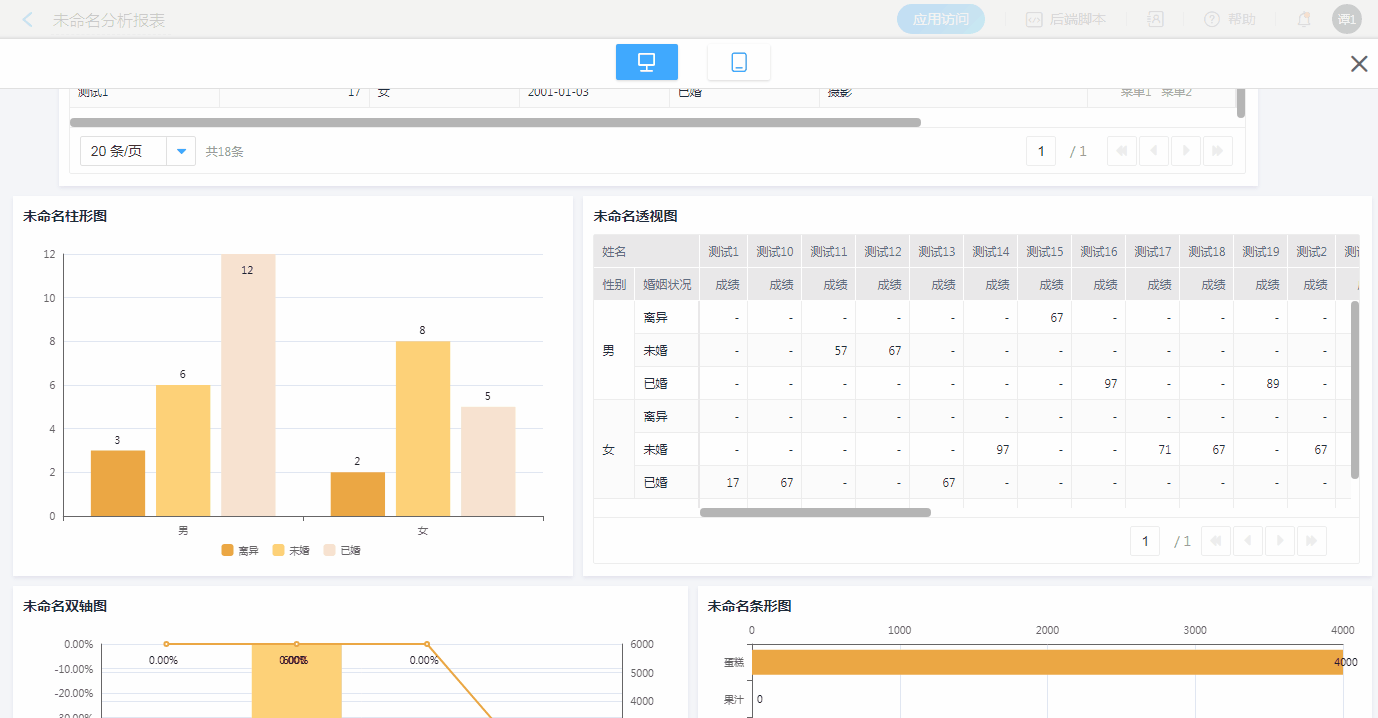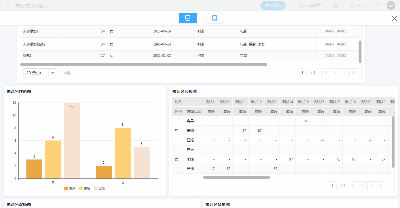• 点击维度内(性别、婚姻状况)的任一字段均可联动出对应数据。